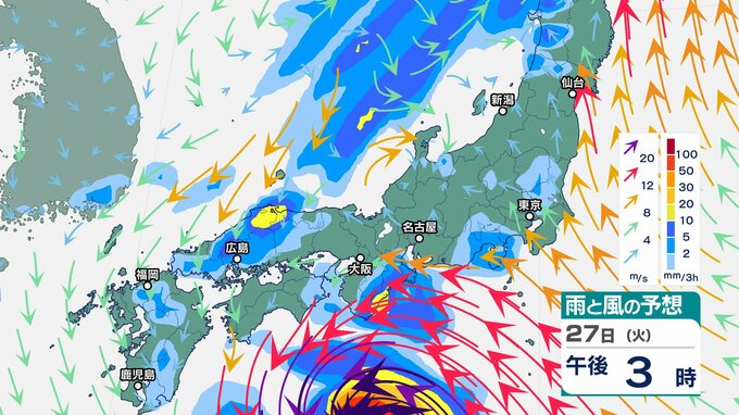 ニュースクリップ 【台風情報 午後3時半更新】台風10号…走行中のトラック転倒レベル “最大瞬間風速60メートル” 予想【雨風シミュレーション】発達のほぼピークで接近 本州縦断の可能性も 2024年8月24日(土) 15:26 国内 天気 雨風シミュレーション27日(火)