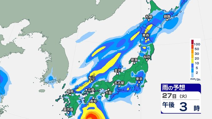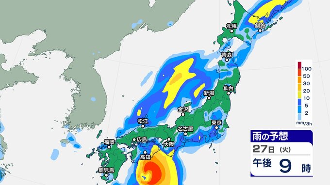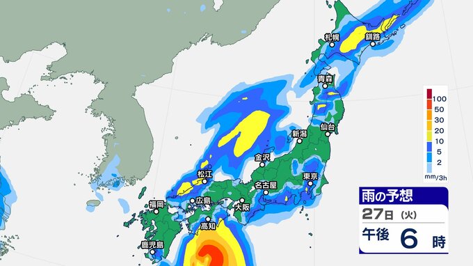 ニュースクリップ 【台風情報 午前7時更新】台風10号 “四国・近畿・北陸” 直撃の可能性…進路の予報円いまだ大きく【雨の動きシミュレーション】接近前から前線を刺激 “大雨” に注意・警戒 2024年8月25日(日) 07:30 国内 天気 雨のシミュレーション27日(火)