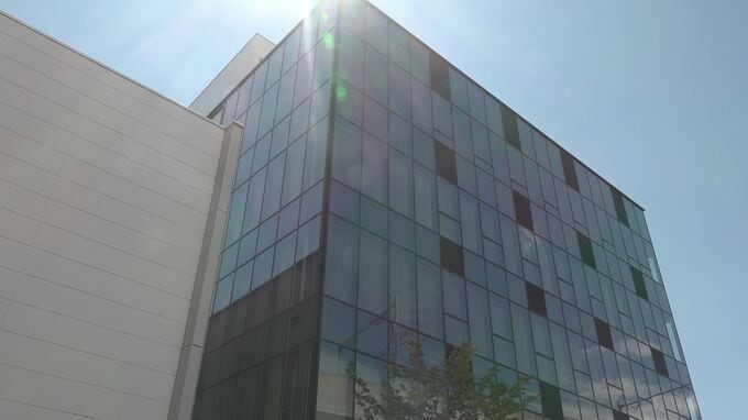 25日、富山市の本社の隣りに完成した6階建てのビル。建設・デザイン部の拡張と国内トップを目指す福利厚生制度のさらなる充実を図るために建てられました。