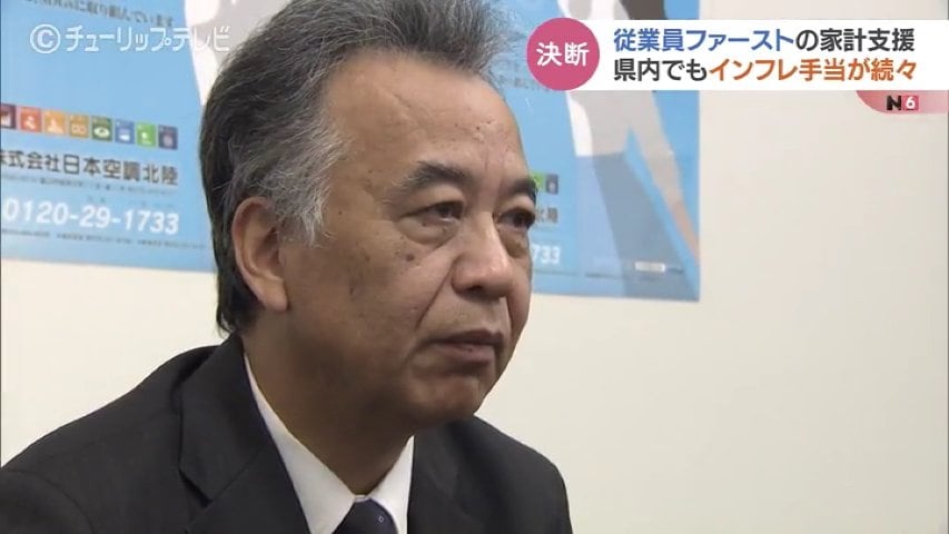日本空調北陸 西川博志社長:「インフレ手当を出すことによって社員の家計の助けになればいいかなと思って決断しました。コロナ禍で疲弊した飲食業、観光業にも貢献できるし、経済の活性化につながればと思っております」