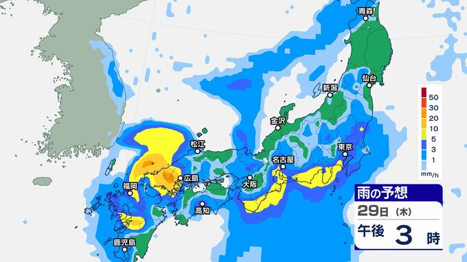 ニュースクリップ 【台風10号 27日午前5時更新】29日以降 西日本にノロノロ接近 上陸か【雨の動きシミュレーション】速度遅く予報円では上陸後 列島縦断の可能性も 2024年8月27日(火) 05:37 国内 天気 雨のシミュレーション29日(木)午後3時まで