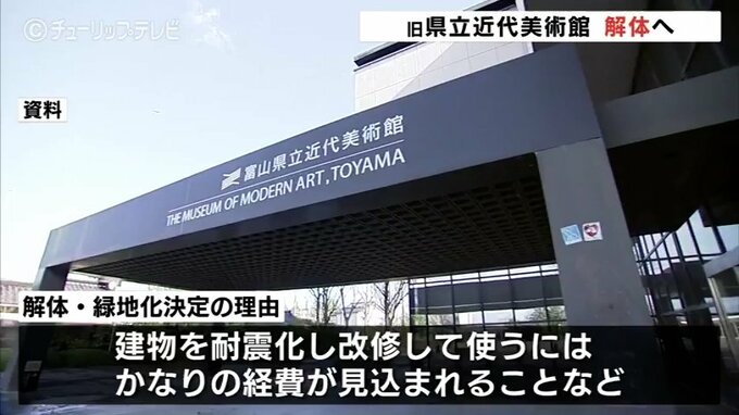 富山県は8年前に閉館した富山市の旧県立近代美術館を解体し、緑地化することを決めました。