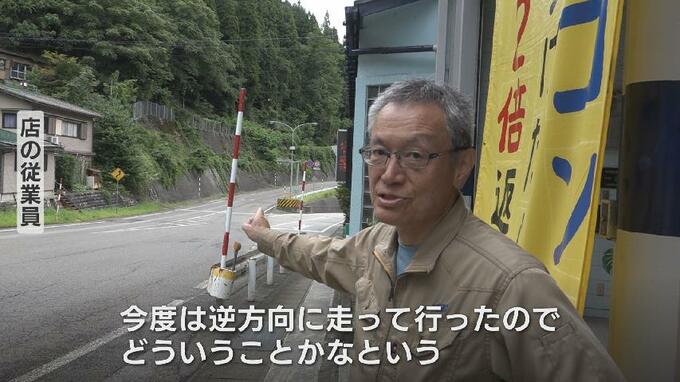 従業員「(白い軽乗用車が)こちらの方から高山の方に向かって走っていきました」「そのあとまたサイレンの音が聞こえて、また窓から見ると今度は逆方向に走って行ったので、どういうことかなという」