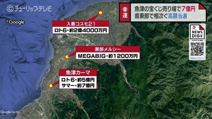 富山県東部では、魚津のほか、入善の売り場でおよそ2億4千万円、黒部の売り場でスポーツくじで県内初の大当たりが出るなど高額当選が相次いでいます。