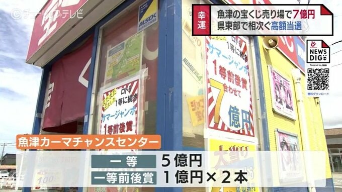 今月23日に抽選が行われた「サマージャンボ宝くじ」。富山県魚津市の「魚津カーマチャンスセンター」から計7億円の高額当選が出たことがわかりました。