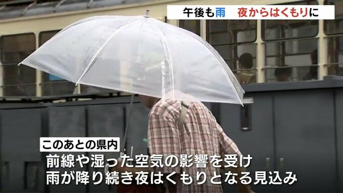 県内はこのあとも前線や湿った空気の影響を受け雨が降り続き、夜は、くもりとなる見込みです。