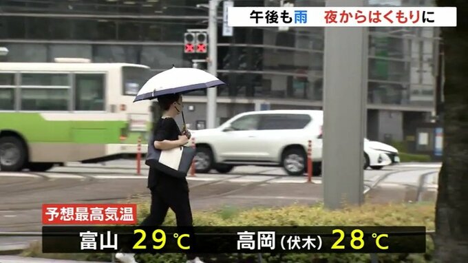 29日の富山県内は、前線や湿った空気の影響で朝から、くもり、または雨となっています。県内は早くて31日から台風10号の影響を受ける見込みで、最新の情報に注意してください。