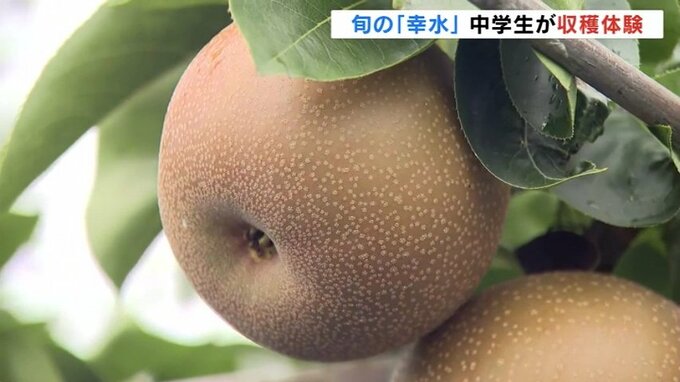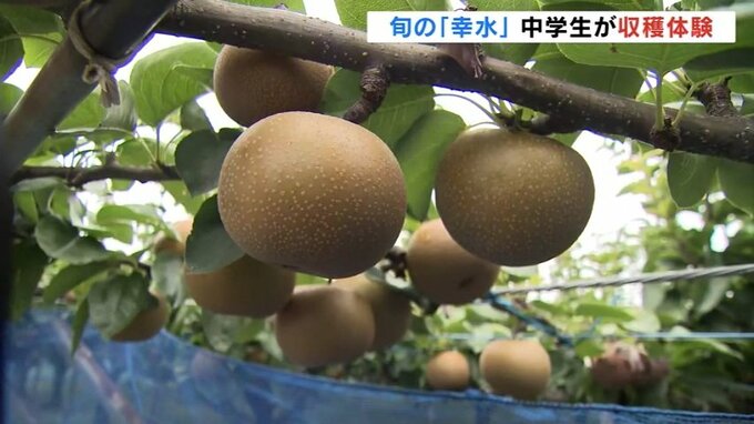 旬を迎えている呉羽梨の「幸水」。29日は地元の中学生たちが収穫に挑戦しました。