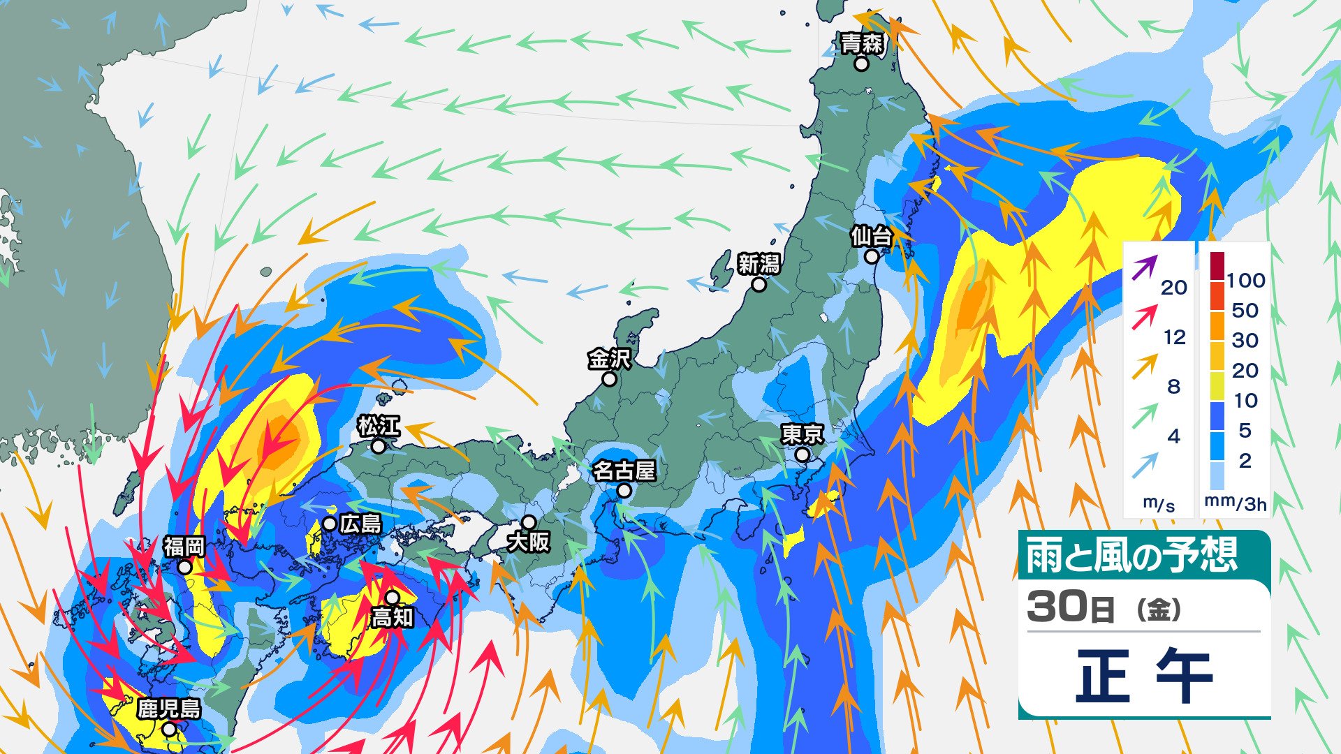 ニュースクリップ 【台風10号情報 30日午前11時更新】1日頃に “熱帯低気圧” 勢力弱まるも動き遅く【雨風シミュレーション】影響も長引き “大雨災害” に厳重警戒 2024年8月30日(金) 12:00 国内 雨と風のシミュレーション30日(金)正午~