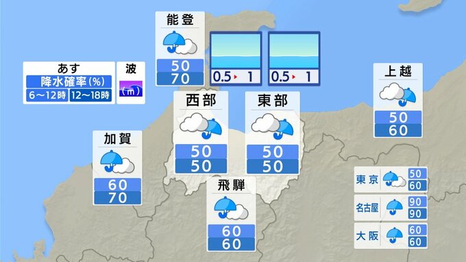また、北陸地方では台風周辺や高気圧の縁を回る暖かく湿った空気が流れ込んでいます。