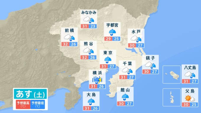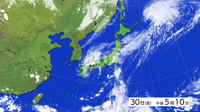 熱帯低気圧は、30日夜には関東の東海上を北上し31日朝には北海道付近に進む見込みです。関東甲信地方は、熱帯低気圧や太平洋高気圧の縁をまわる暖かく湿った空気が流れ込み、31日にかけて大気の非常に不安定な状態が続くでしょう。