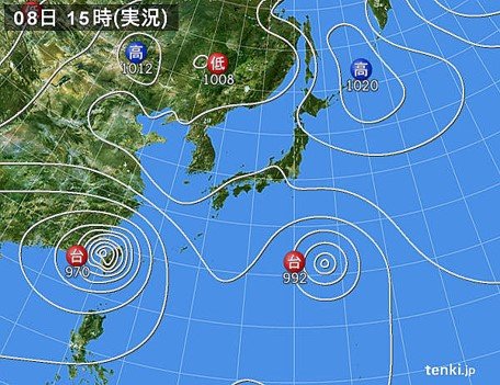 ※台湾を通過して衰弱 台風中心付近の気圧が上がり、台風の眼が不明瞭になって雲が散り始める