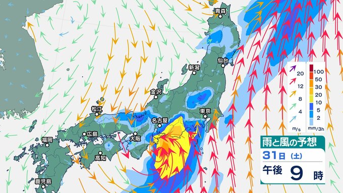 ニュースクリップ 関東甲信 31日午前6時までの48時間降水量、小田原・海老名で観測史上1位を更新 1日まで“バケツをひっくり返したような雨”が降るる所がある見込み 土砂災害に厳重に警戒を (雨風シミュレーション) 2024年8月31日(土) 09:31 国内 天気 雨と風のシミュレーション 31日(土)午前9時~