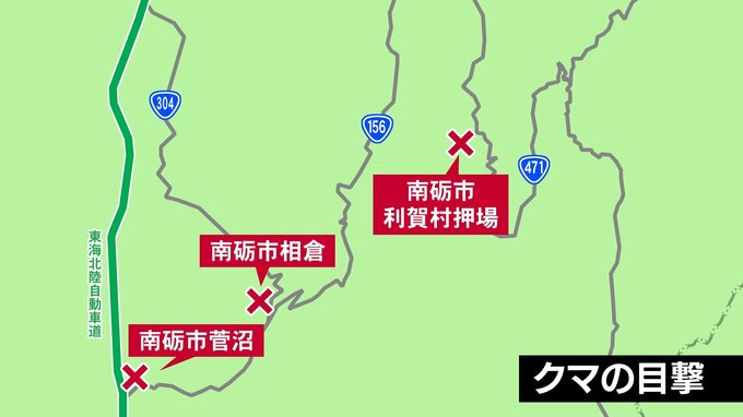 南砺市の山間部では、きのう1日からきょう2日にかけてクマの目撃が相次いでいます。