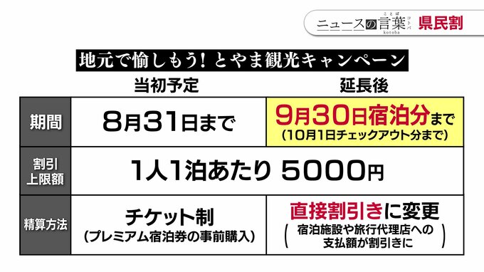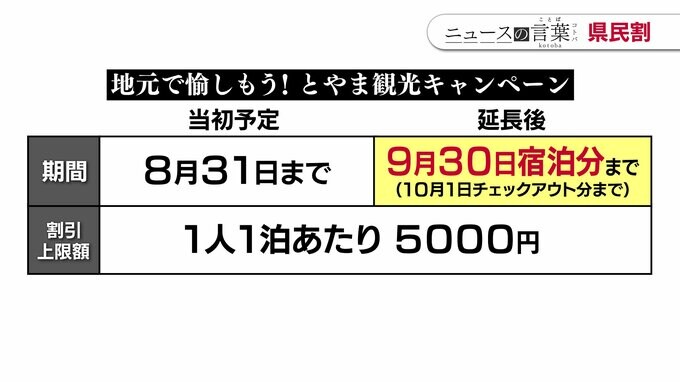 富山県内や地域ブロックでの旅行で割引きが受けられる「県民割」は、9月末まで延長されました。ただ、これまでと変わった点もあります。また、県民割の全国拡大版とも言える「全国旅行支援」はどうなるのか。行楽の秋に向けて情報を整理してみます。