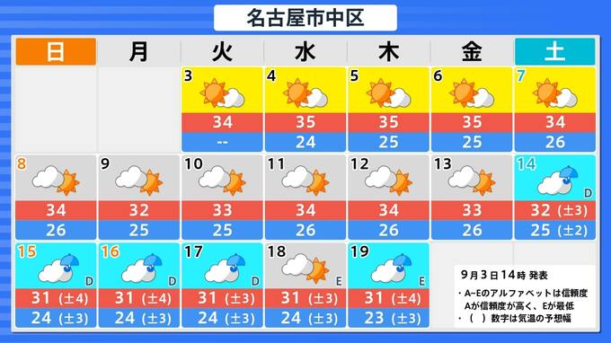 【東海地方】9月8日頃から かなりの高温