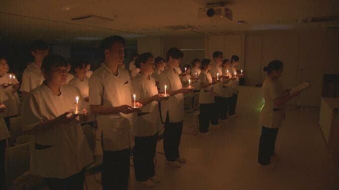 富山市医師会看護専門学校で戴灯式が行われ、看護の基礎を学んだ准看護学科の1年生37人が、ろうそくに火を灯し、決意を新たにしました。