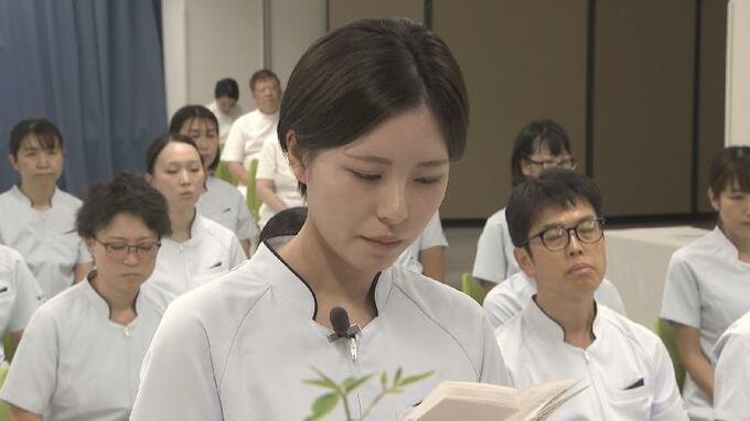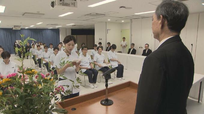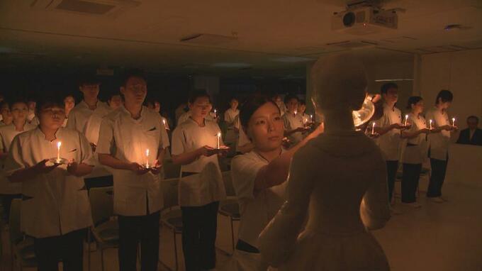 「戴灯式」は、看護従事者としての責任の重さを自覚し看護の道に進む決意を示すもので、学生を代表し、寺崎彩花さんが誓いの言葉を述べました。