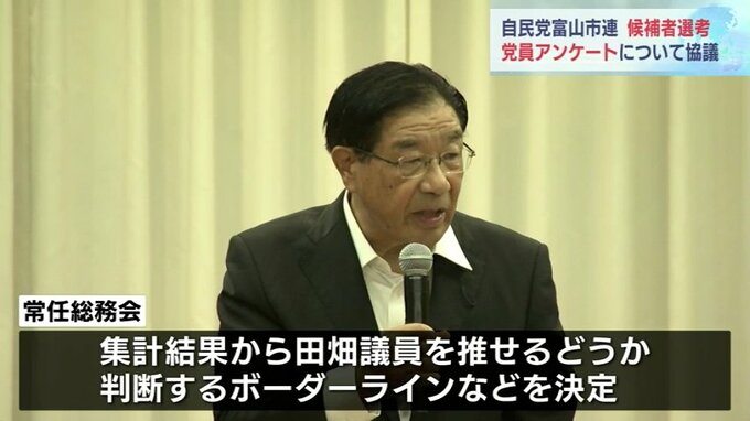 そして7日、行われた常任総務会では田畑議員が候補者としてふさわしいかどうかを問う党員アンケ―トの実施と具体的な質問内容が決まりました。