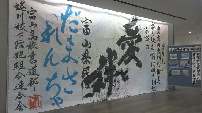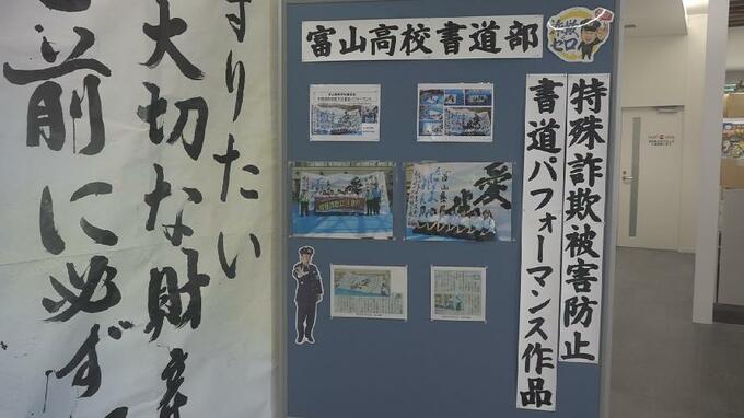 生徒たちが書き上げた詐欺被害の防止を呼びかける作品は、今月末まで富山南警察署に掲示され、10月からは地域の文化祭などでも飾られる予定です。