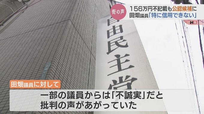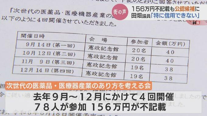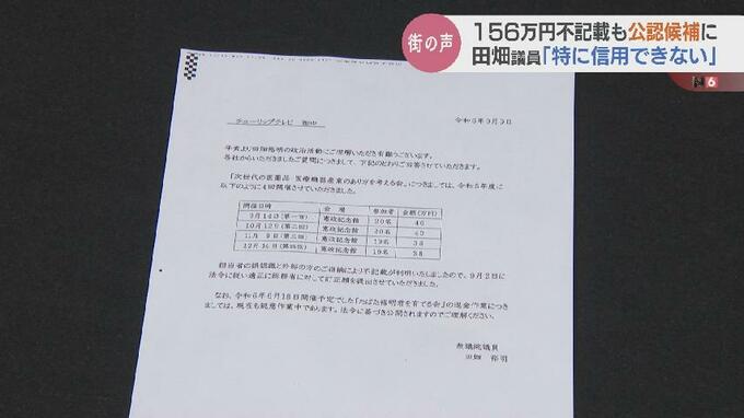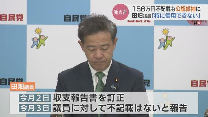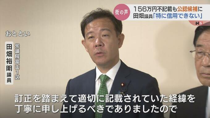 衆議院富山1区選出の田畑裕明議員が、収支報告書の政治資金パーティーの収入あわせて156万円の不記載があったことを明らかにしました。県民からは「田畑さんは信用できない」などと厳しい声が上がっています。