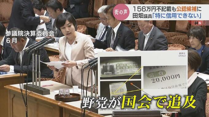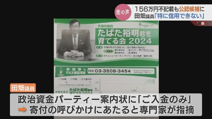さらに6月には田畑議員の政治資金パーティーの案内状の「ご入金のみ」の項目が、寄付の呼びかけにあたるとして野党が国会で追及。田畑議員は違法性については否定していました。