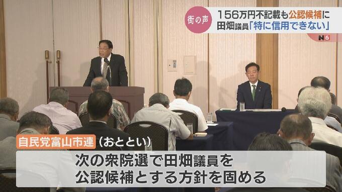 しかし自民党富山市連は8日の会合で次の衆院選で田畑議員を公認候補とする方針を決めました。こうした富山市連の決定に県民は…。