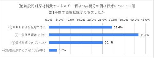 ガソリンや光熱費の上昇など企業物価の上昇が問題となっていることが明らかになり、原材料費やエネルギー価格の高騰分の価格転嫁について、過去1年間で「価格転嫁できていない」と答えた企業は25.1%と、全体の4分の1を占めています。