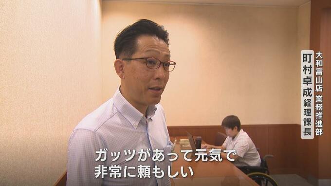 大和富山店業務推進部 町村卓成経理課長:「日本代表に選出されるだけあって、ガッツがあって元気で、非常に頼もしい」「(会社としても)大石さんの大変なところを少しでも周りでカバーできたらと思っています」