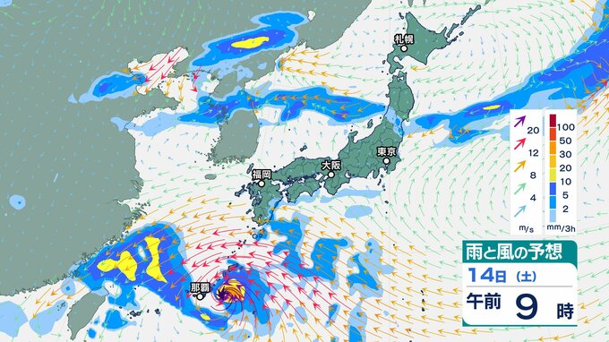 ニュースクリップ 【台風13号 13日午前6時更新】14日夕方頃に強い勢力で沖縄・奄美に接近 猛烈な風が吹き猛烈なしけのおそれ【雨風シミュレーション】建物の一部が広範囲に飛散するおそれも 2024年9月13日(金) 06:30 国内 天気 雨風シミュレーション14日(土)