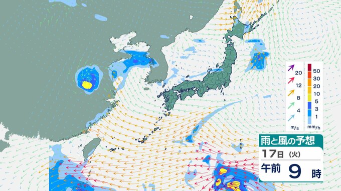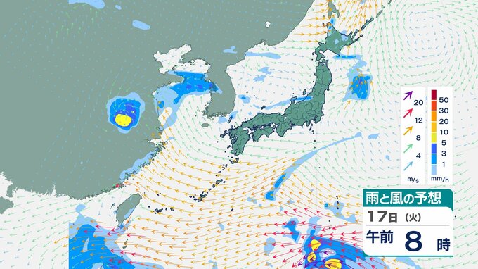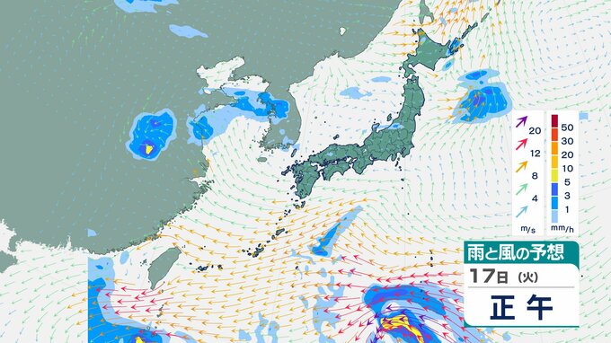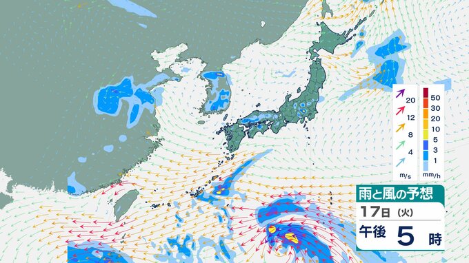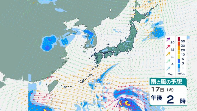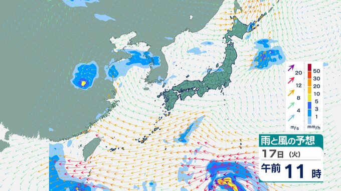 ニュースクリップ 【台風情報 17日午前7時更新】南シナ海の“台風のたまご” きょうにも台風になって東へ【雨風シミュレーション】台風14号あすにも奄美・沖縄へ『トリプル台風』になるか? 2024年9月17日(火) 07:18 国内 天気 雨と風のシミュレーション 17日(火)午前7時~