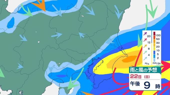 【関東甲信】“警報級の大雨”となる可能性も きょうも夜遅くにかけて局地的に激しい雨や雷雨がある見込み 1時間予想降水量は多い所で関東北部40ミリ 関東南部40ミリ 甲信40ミリ【23日までの雨風シミュレーション】 2024年9月19日(木) 10:29 国内 天気 雨風シミュレーション22日3時間毎
