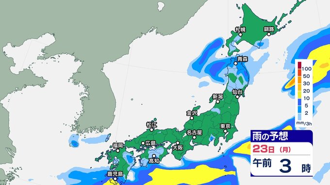 ニュースクリップ 【大雨情報 22日午後5時半更新】大雨ピーク過ぎても土砂災害に警戒【雨の動きシミュレーション】23日にかけ東北地方から西日本 河川の増水や氾濫に厳重警戒、低い土地の浸水に警戒 2024年9月22日(日) 17:41 国内 天気 雨のシミュレーション23日(月)