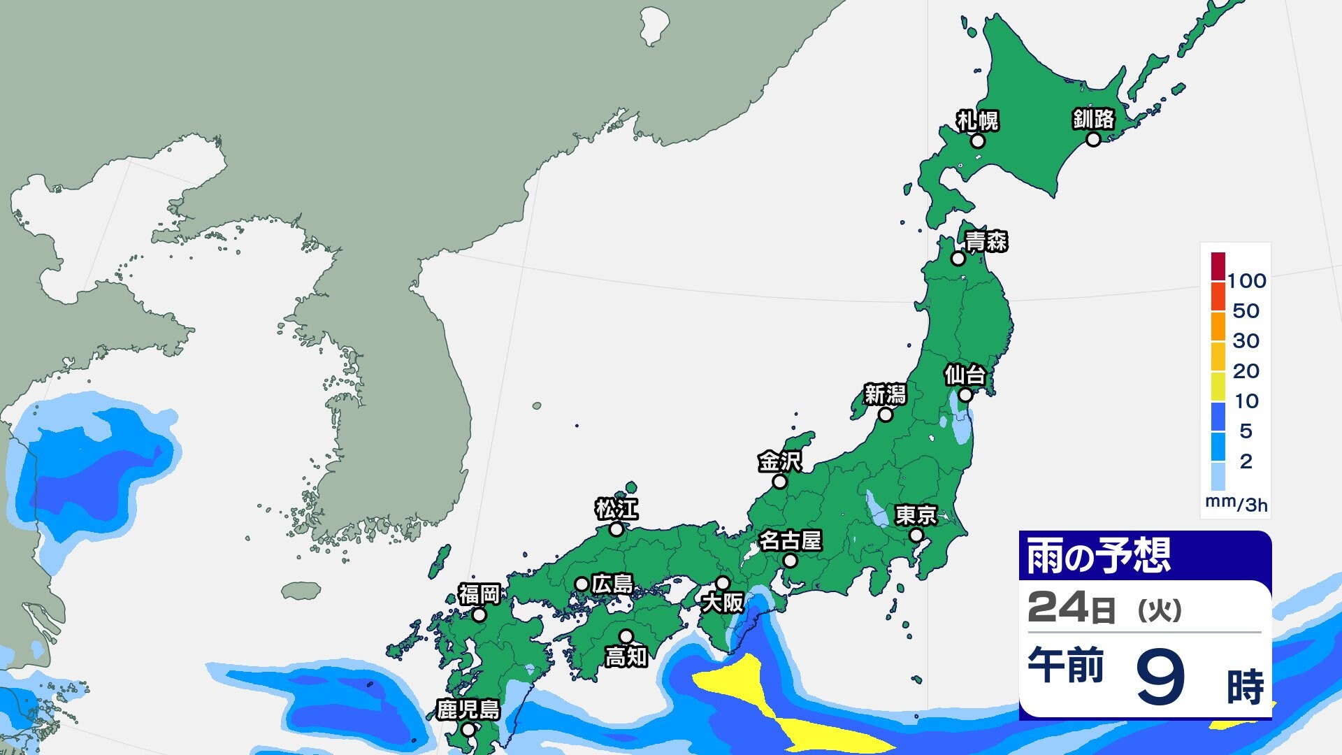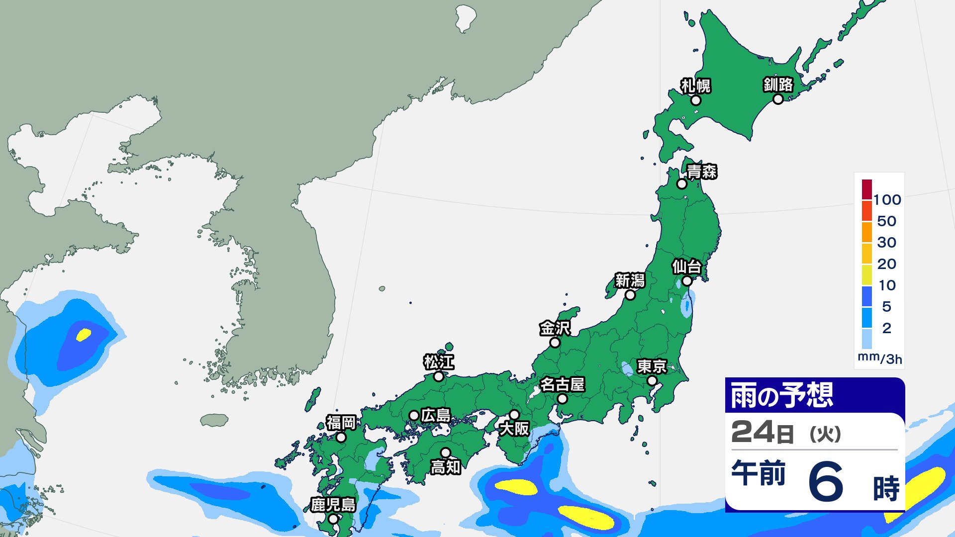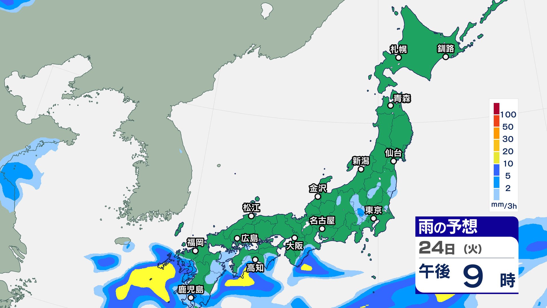 ニュースクリップ 23日は天気回復も晴天長続きせず【2週間天気】25日は西日本で大雨のおそれ【雨の動きシミュレーション】10月も真夏日続出か 2024年9月23日(月) 09:28 国内 天気 雨のシミュレーション 24日(火)