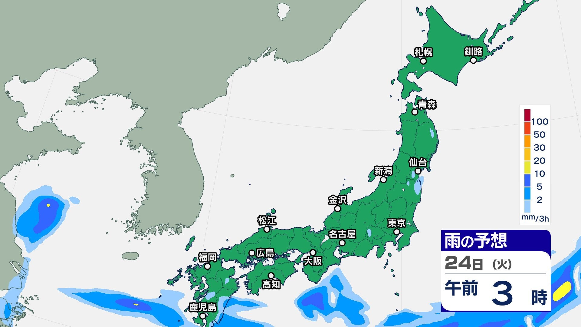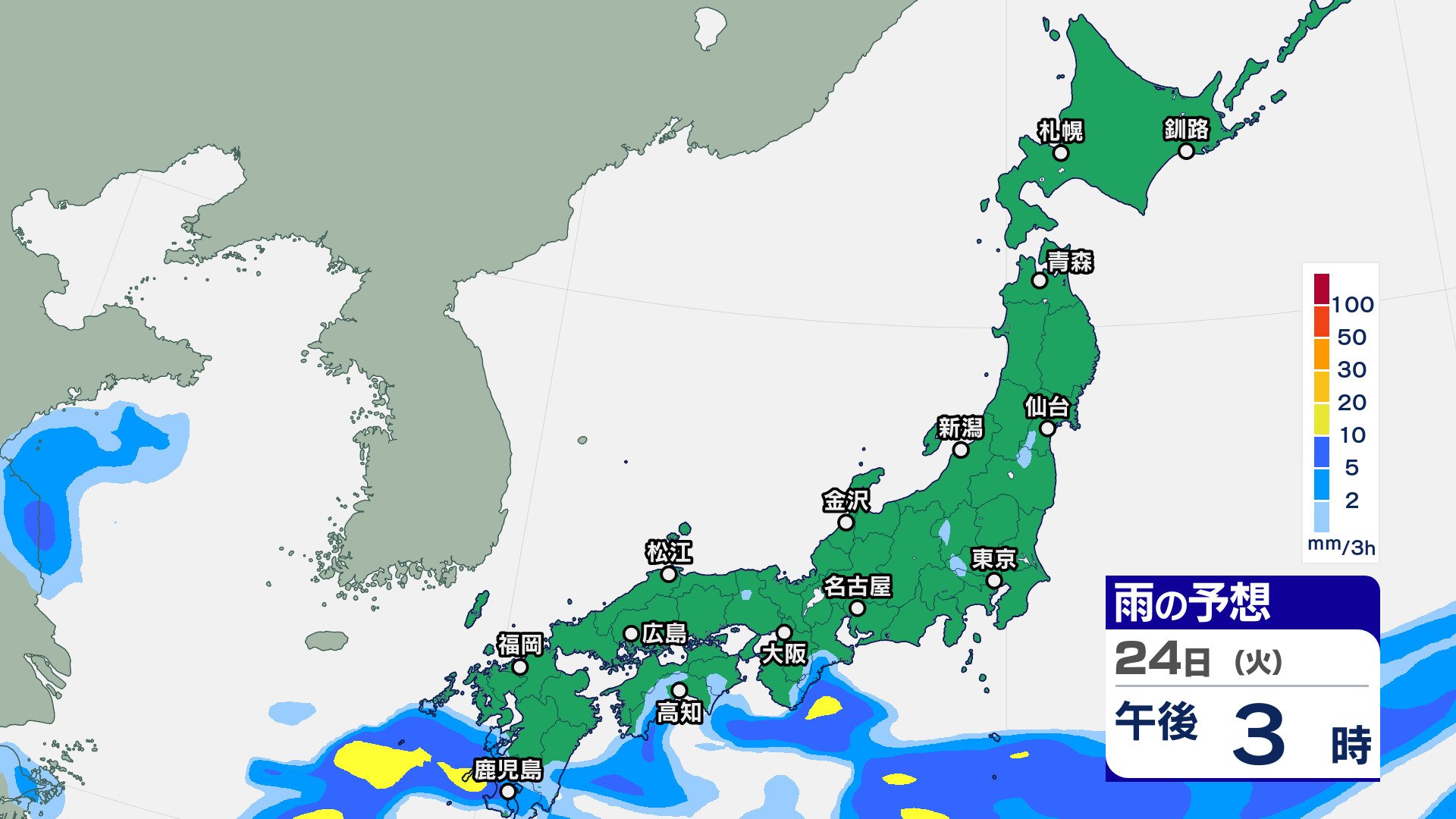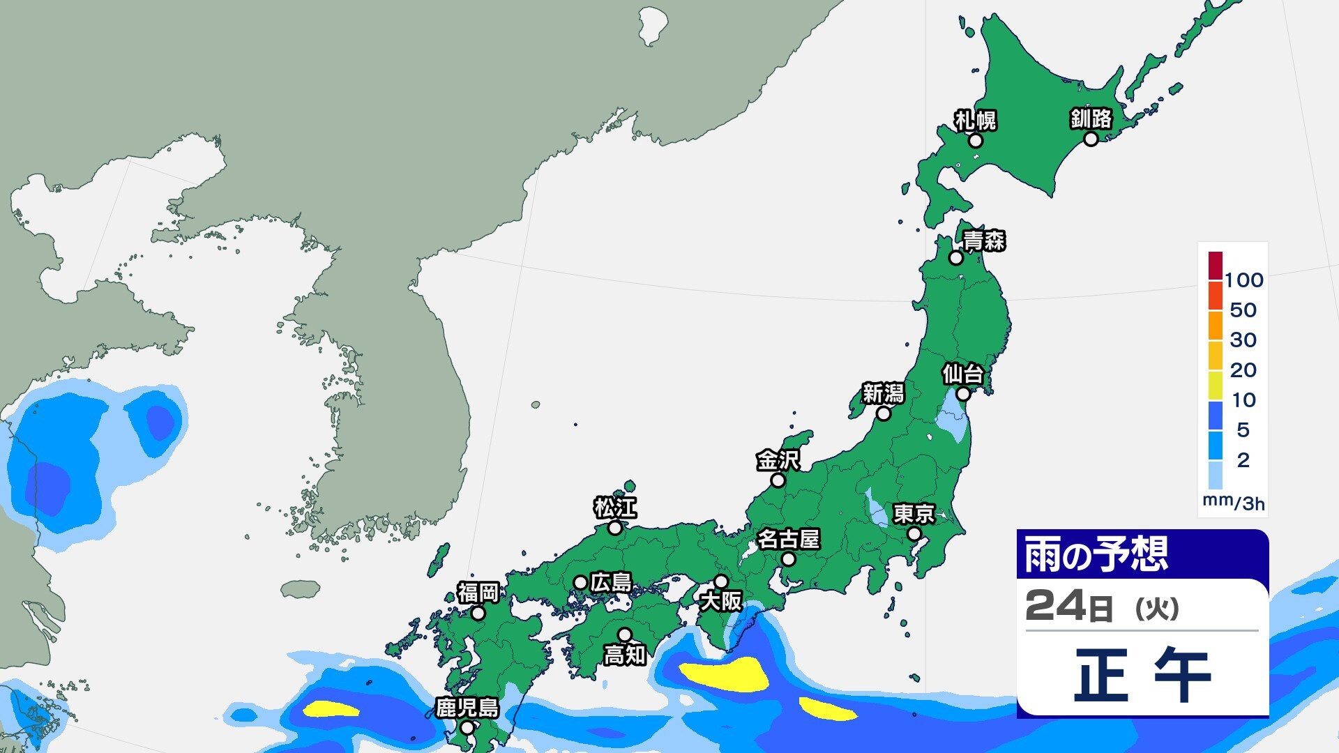 ニュースクリップ 23日は天気回復も晴天長続きせず【2週間天気】25日は西日本で大雨のおそれ【雨の動きシミュレーション】10月も真夏日続出か 2024年9月23日(月) 09:28 国内 天気 雨のシミュレーション 24日(火)