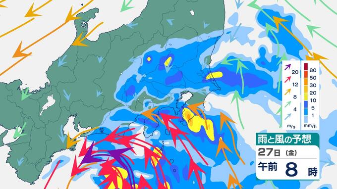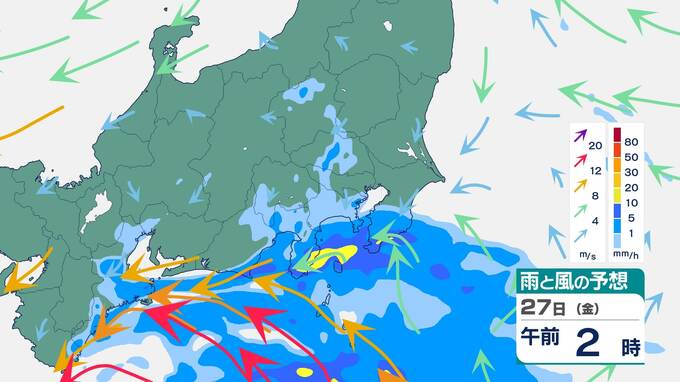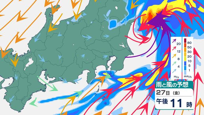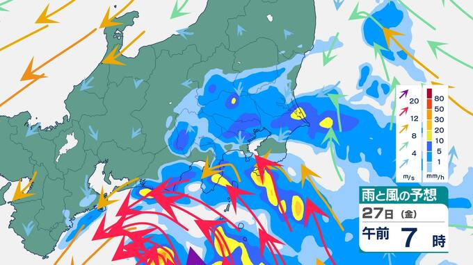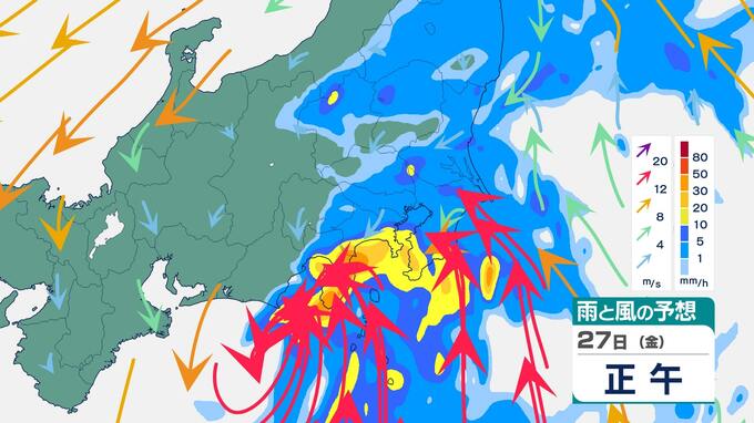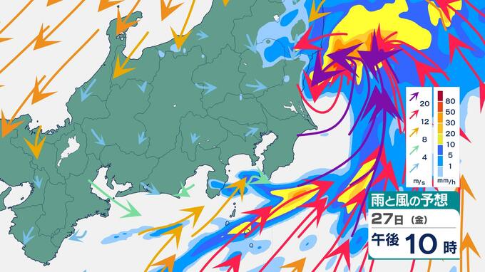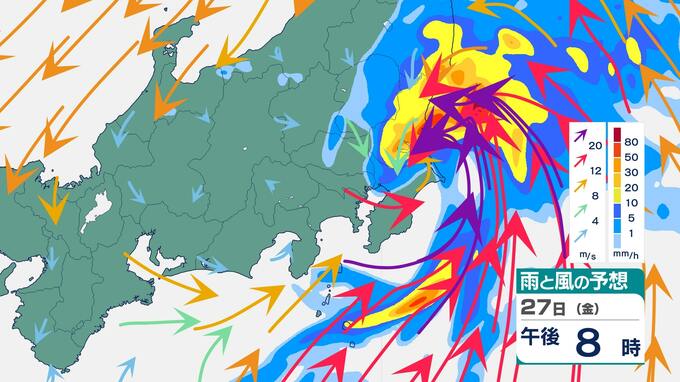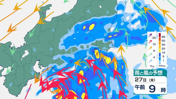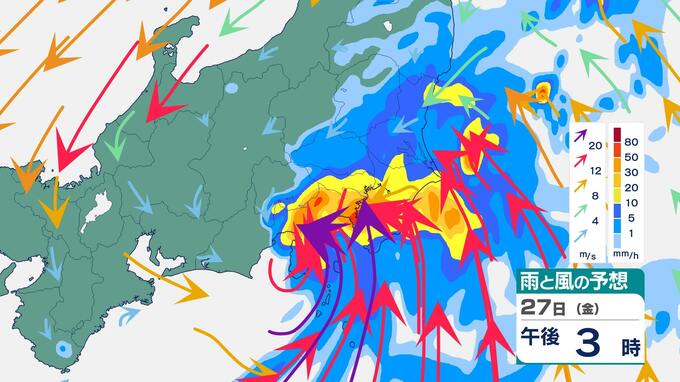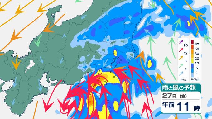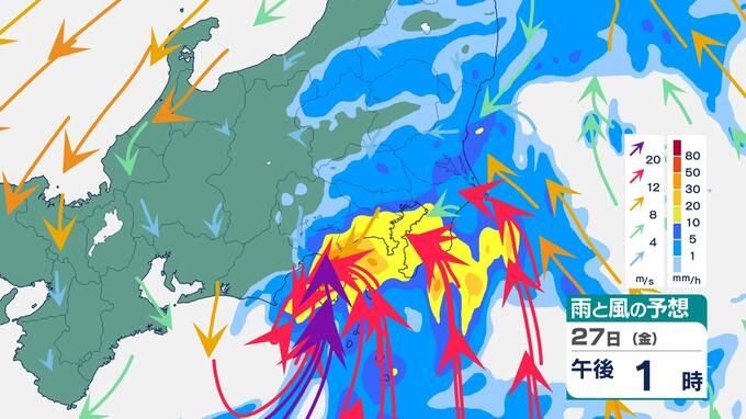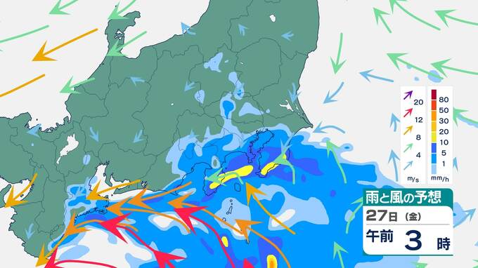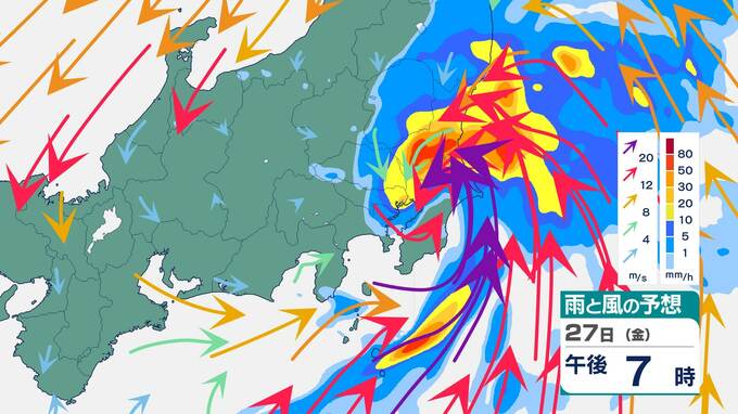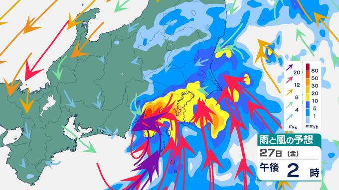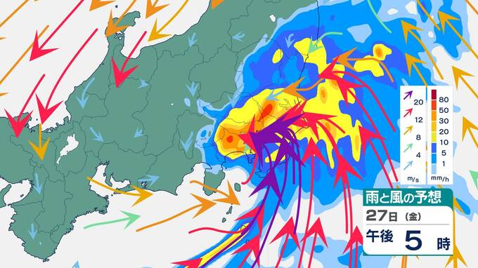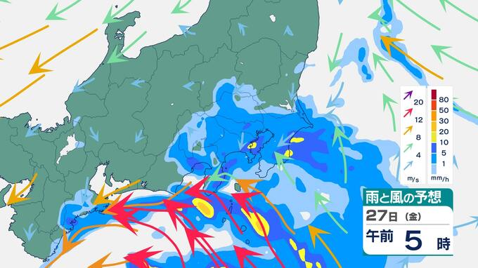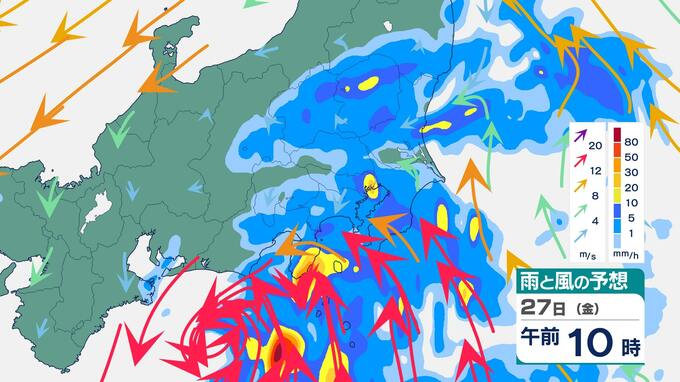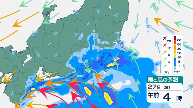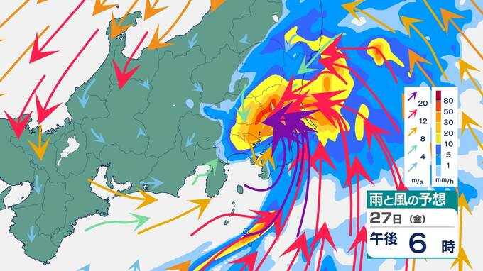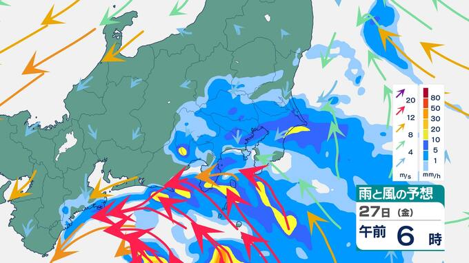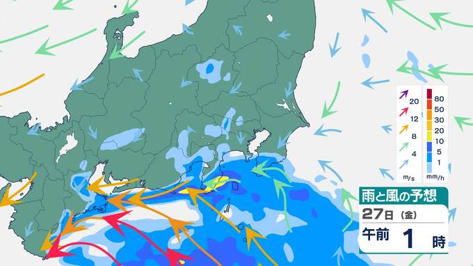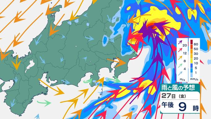 ニュースクリップ 【関東甲信大雨情報午後5時更新】あす朝に東海道沖で発生見込みの低気圧が夜には関東へ あさってにかけ“警報級の大雨となる可能性”土砂災害、低い土地の浸水、河川の増水に注意・警戒を【雨風のシミュレーション1時間毎】 2024年9月26日(木) 17:12 国内 暮らし・マネー 雨のシミュレーション27日(金)