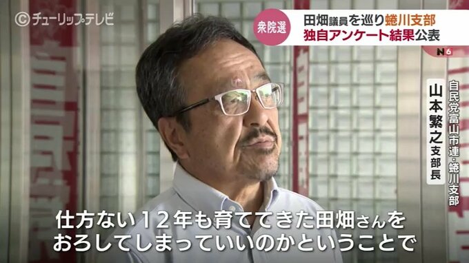 中川支部長は、富山市連として田畑氏を公認候補とすることは、アンケートの結果では変わらないとしています。