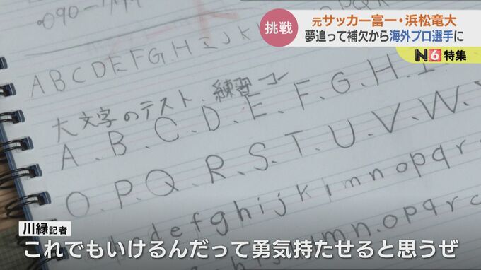 浜松竜大選手「英語の勉強していました。ABCDから。これです。このレベルです。大文字のテスト練習って言ってるくらいだからね。大雅見て、次のページは、ほぼないから。グッドモーニング、おはよう」「この人ヤバくないってなるんじゃない」