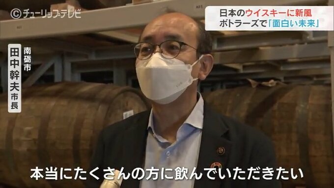 空っぽだった棚にはおよそ600丁のウイスキー樽が。江井ヶ嶋酒造などから購入した原酒が並び、契約を結んだ蒸留所は11に増えました。南砺市内で熟成されるウイスキーに田中市長も期待しています。