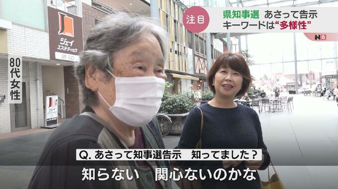 70代男性「私自身は知事選で特別表立って争点になるところがあるおは思えません。知事選よりも衆議院選挙の方が関心度が高いです。これだけ政治不信が叫ばれててそれに対して我々が自分の意思が表示できるチャンスですから」