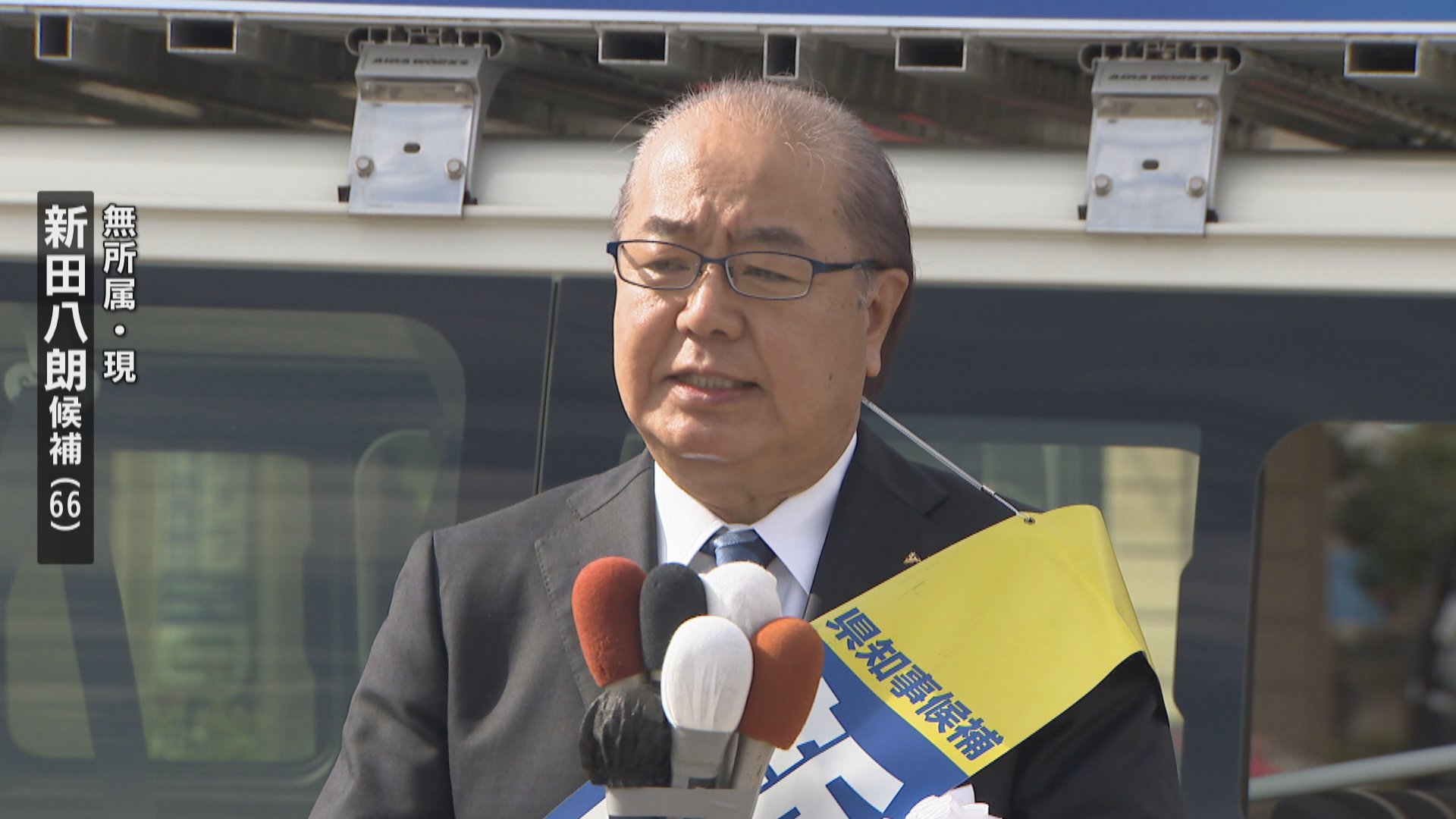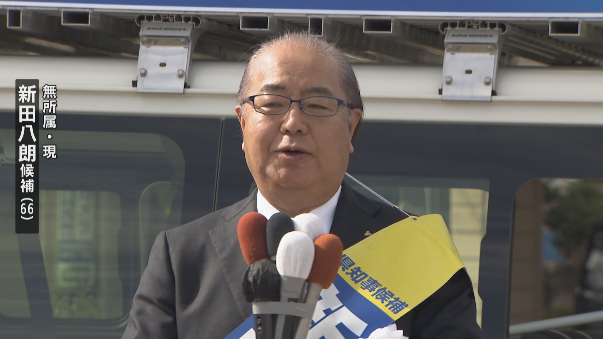無所属の現職で自民、公明、立憲、国民が推薦する新田八朗(にった・はちろう)候補(66)。
