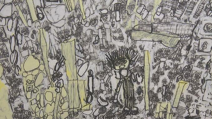 線を重ねて重ねて不思議な作品を生み出すのは、高岡市のシノタケさん(35)です。