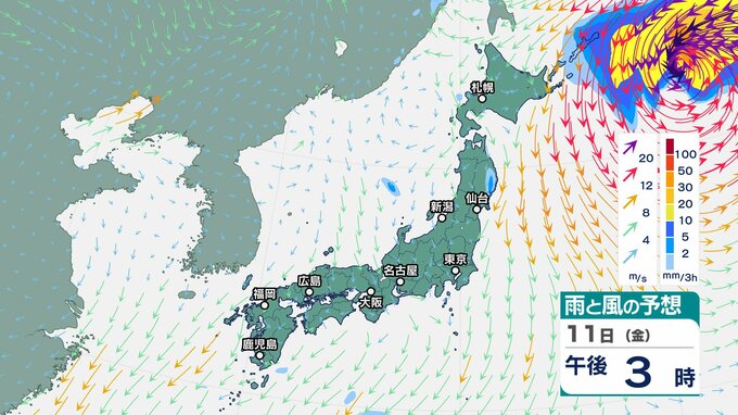 ニュースクリップ 3連休は全国的に行楽日和の見込み 関東以西では夏日続出か【雨と風の3時間ごとシミュレーション】次の雨は15日~16日頃 2週間天気 2024年10月10日(木) 16:43 国内 暮らし・マネー 雨風シミュレーション3時間ごと11日(金)