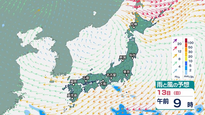ニュースクリップ 3連休は全国的に行楽日和の見込み 関東以西では夏日続出か【雨と風の3時間ごとシミュレーション】次の雨は15日~16日頃 2週間天気 2024年10月10日(木) 16:43 国内 暮らし・マネー 雨風シミュレーション3時間ごと13日(日)