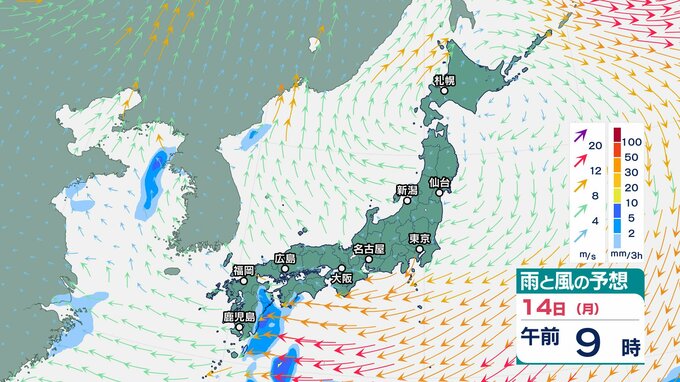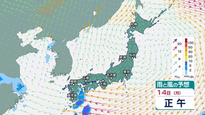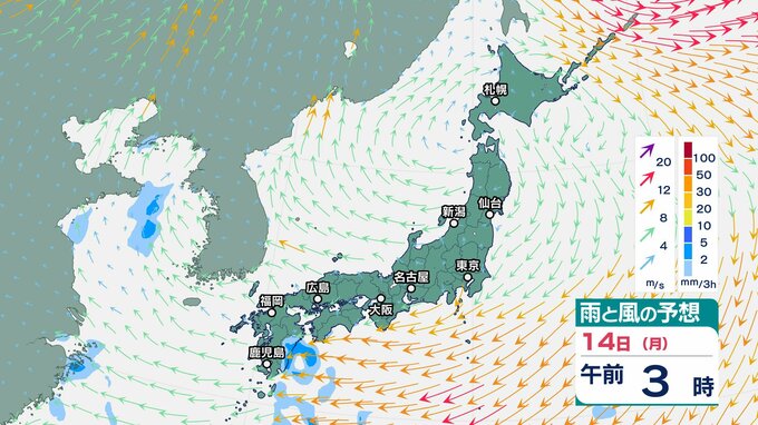 ニュースクリップ 3連休は全国的に行楽日和の見込み 関東以西では夏日続出か【雨と風の3時間ごとシミュレーション】次の雨は15日~16日頃 2週間天気 2024年10月10日(木) 16:43 国内 暮らし・マネー 雨風シミュレーション3時間ごと14日(月)