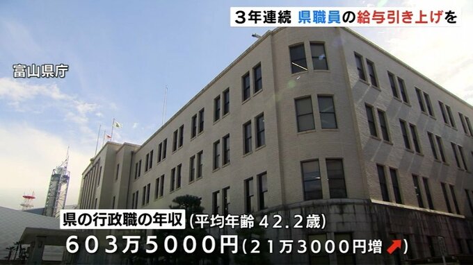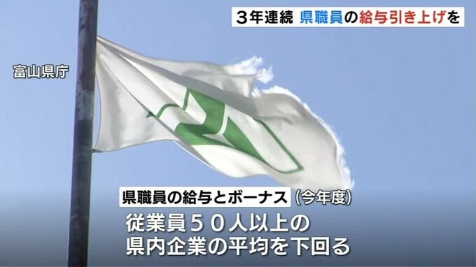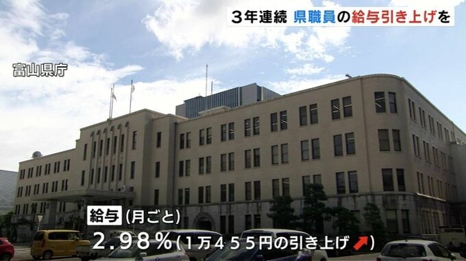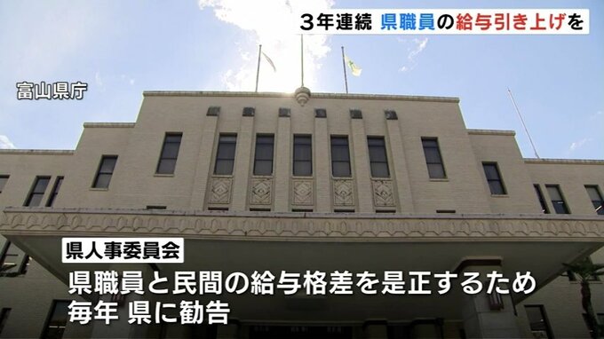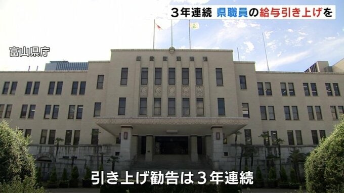 富山県人事委員会は、県職員の給与とボーナスを引き上げるよう県に勧告しました。引き上げの勧告は3年連続で、改定率が2%を超えるのは32年ぶりです。