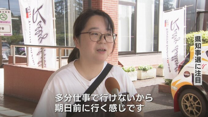 女性(知事選に注目):「多分仕事で行けないから期日前に行くっていう感じ。子どもの将来のことは気になります」