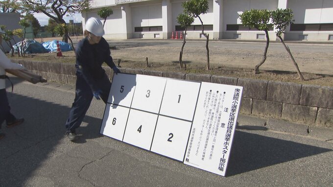 市内304か所に掲示板を設置予定で、衆院選と県議補選の掲示板はいずれも公示日前日の今月14日と17日までに作業を終えることにしています。