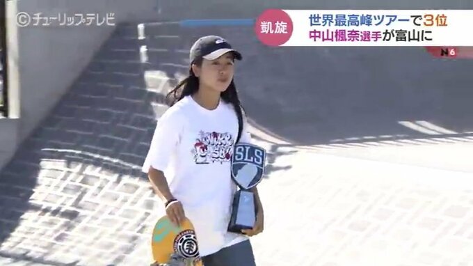 スケートボードの“世界最高峰”ツアーで3位 大技を決めた中山楓奈選手が表彰台に…一夜明け地元に凱旋 富山 2024年10月14日(月) 19:36 国内 オーストラリアで12日におこなわれたスケートボードの世界ツアー「ストリートリーグ」で、2大会連続でオリンピックに出場した中山楓奈選手が初挑戦となる大技を決め、表彰台にのぼりました。けさ帰国したばかりの…