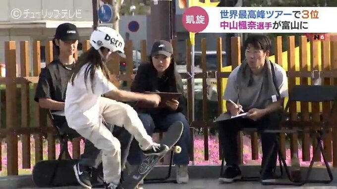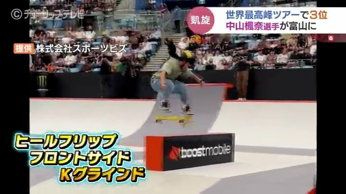 オーストラリアで12日におこなわれたスケートボードの世界ツアー「ストリートリーグ」で、2大会連続でオリンピックに出場した中山楓奈選手が初挑戦となる大技を決め、表彰台にのぼりました。けさ帰国したばかりの中山選手、地元・富山市に凱旋です。